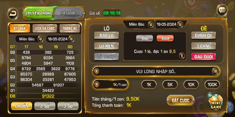 Bạn tìm kiếm và click trò chơi “Lô đề” hiển thị trong danh mục sản phẩm của Iwin68. Lúc này, giao diện chốt số mở ra với đầy đủ các hình thức hấp dẫn đang được hệ thống hỗ trợ. Hội viên chọn loại lô đề phù hợp để tham gia dự đoán kết quả.