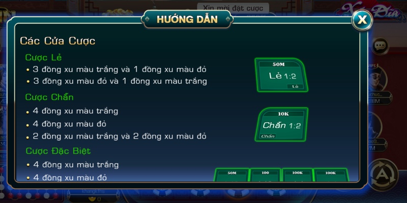 Sân chơi nổi tiếng với mức ăn cược xanh chín mở ra cánh cổng làm giàu chất lượng khiến cộng đồng game thủ vô cùng thích thú. Khi trải nghiệm xóc đĩa, anh em có các lựa chọn thú vị sau: